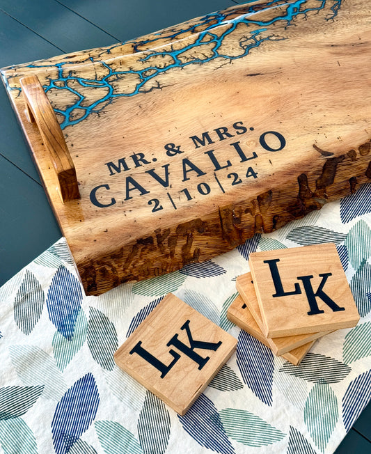 Custom River Challenge Coin Holder - Live Edge with Personal Items